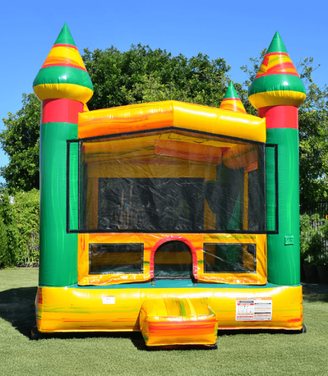 Perfect for birthdays, block parties, and corporate events, our Fiesta Bounce House offers hours of endless entertainment, allowing kids to jump, bounce, and play to their heart's content. Plus, with its durable construction and easy setup, this inflatable is a hassle-free way to add some excitement to any event.